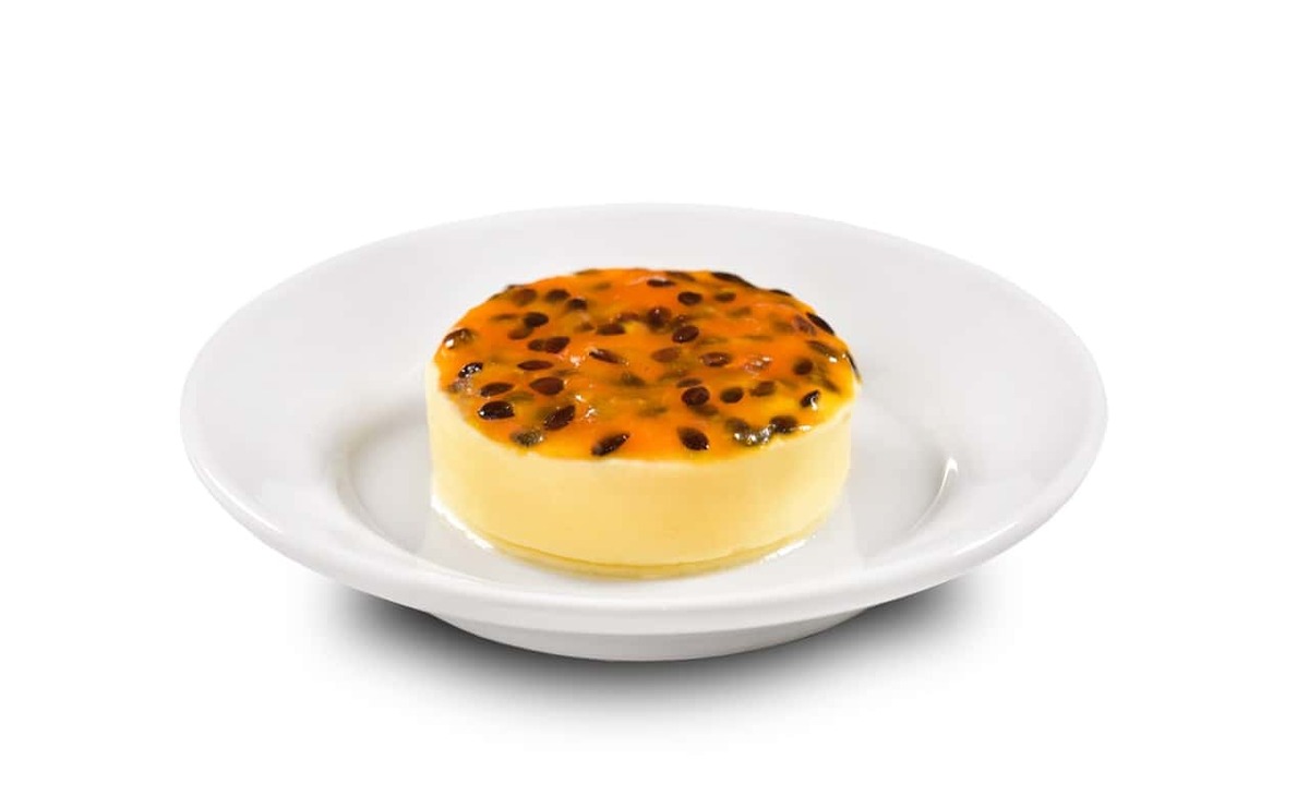 Pudim de maracujá com crumble de broa de mel