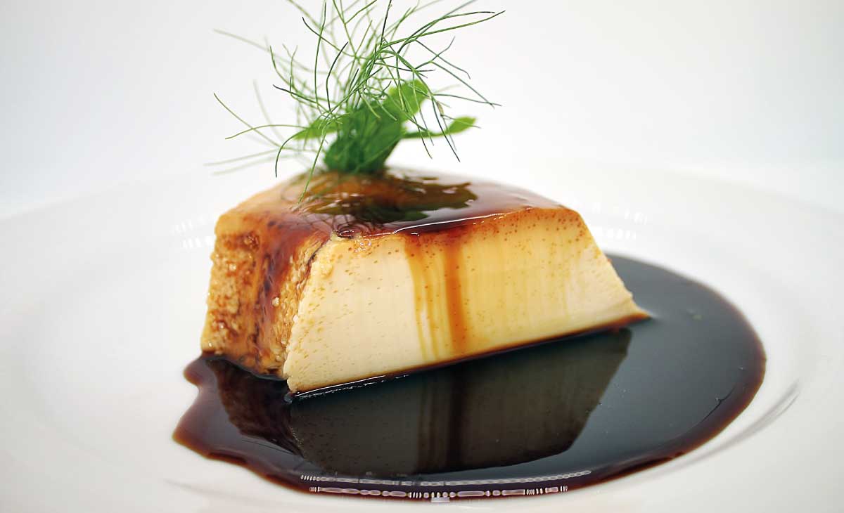 Pudim de Caramelo com coulis de pitanga