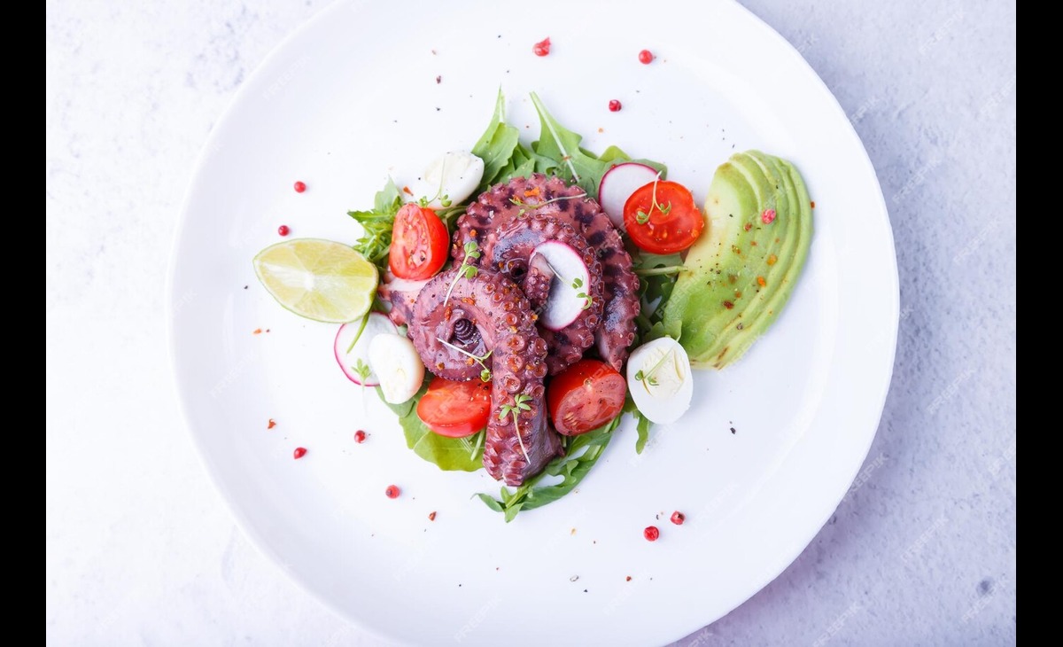 Salada de polvo e vinagrete com abacate